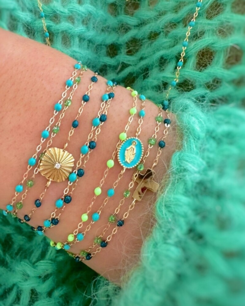 Classique Bracelet Gigi Clozeau Classique en or jaune et résine vert d'eau, 17cm