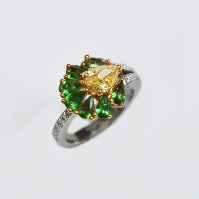 Bague Rullière Bernard "Hera" en or blanc, diamants, tsavorite et diamant jaune