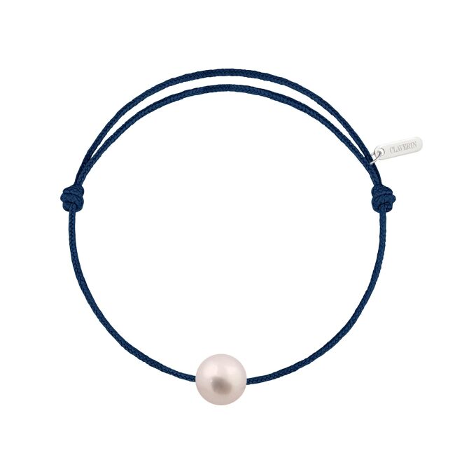 Cordon Bracelet Claverin simply pearly sur cordon bleu marine en argent et perle blanche