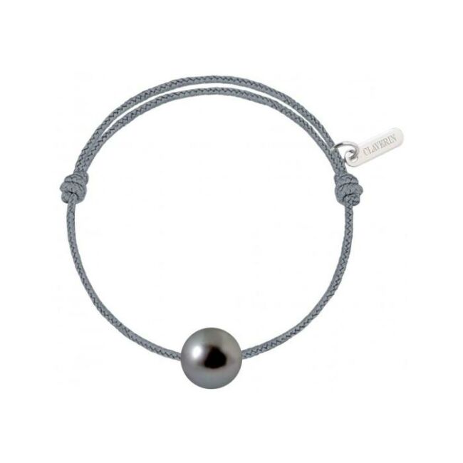 Baby Claverin Bracelet Claverin Baby Pearly sur cordon gris cendre et perle de Tahiti, taille enfant