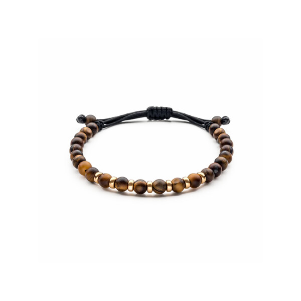 Bracelet Rullière Bernard "Wolf" sur cordon en or jaune et oeil de tigre