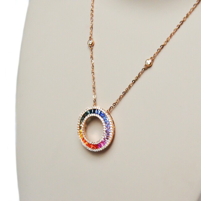 Collier Rullière Bernard "Rainbow" en or rose, diamants et multi saphirs