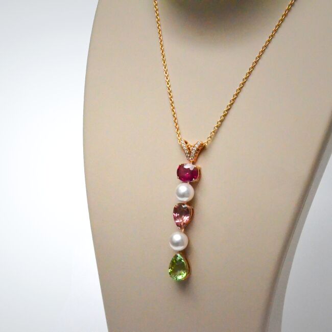 Pendentif Rullière Bernard "Victoria" en or rose, diamants, rubellite, perles de culture