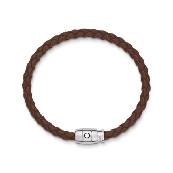 Ce bijou, fabriqué en cuir souple, est doté d'un fermoir en acier inoxydable poli, orné de l'emblème Montblanc.
